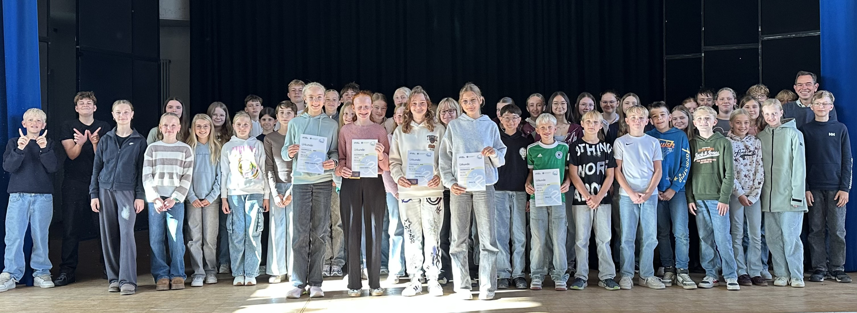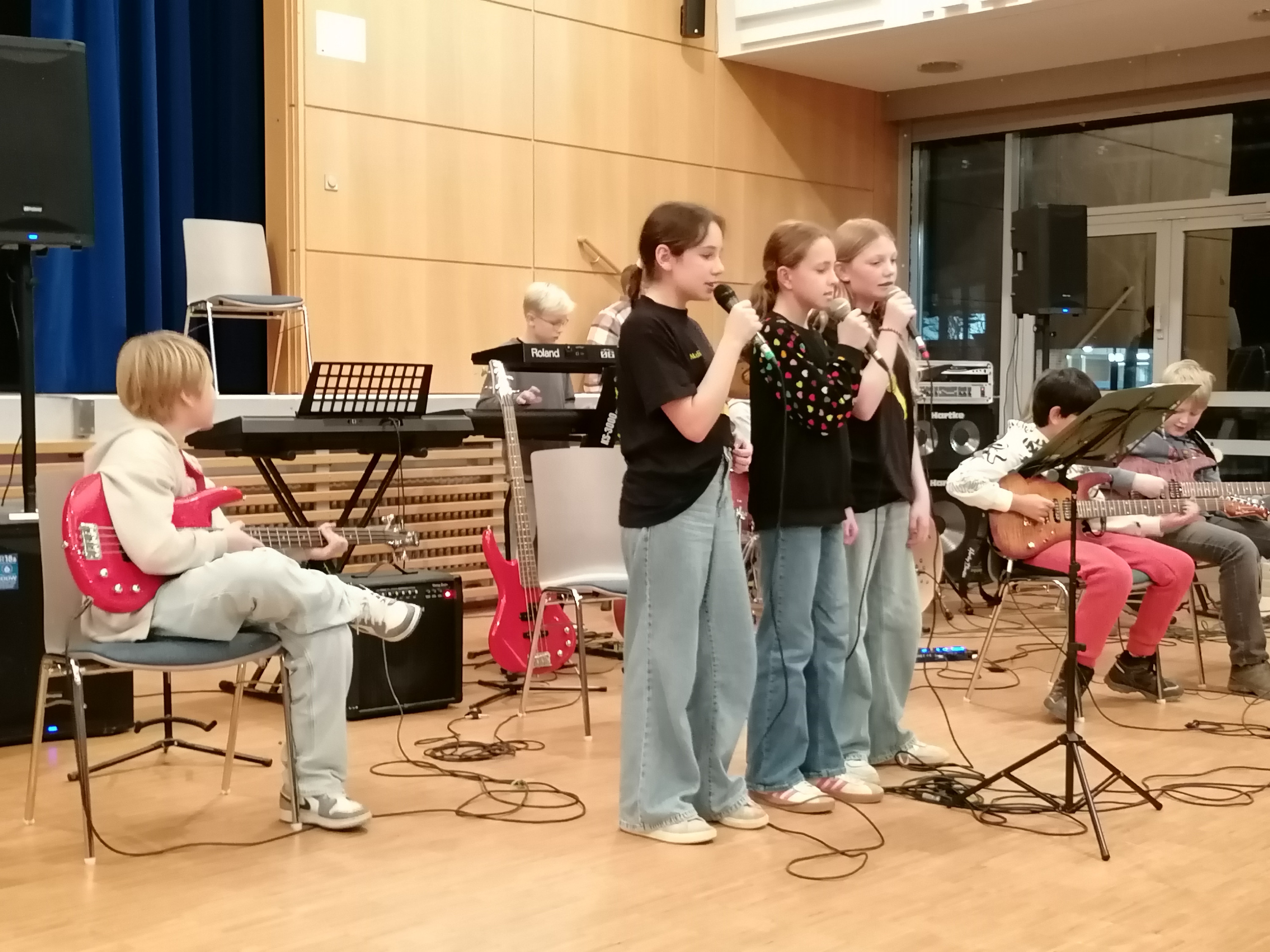 Die Musikgruppen des Gymnasiums Rahden boten am 04.12.2025 ein abwechslungsreiches Konzert mit vielen Winter- und Weihnachtsliedern. Den Auftakt bestritt die Rockgruppe der Klassenband 6 mit „Astronaut“ und „Dance Monkey“. Die ChorCrew der Mittelstufe erfreute das Publikum mit dem südafrikanischen Weihnachtslied „Si njay“ und „Merry Christmas“ von Ed Sheeran und Elton John. Die solistischen Klavierbeiträge von Emily Rudi (Kl. 7b), Sahra Breul (Kl. 6e) und Marie Buschendorf (Jgst. Q1) verzauberten die Zuhörer mit ihren schwebenden und träumerischen Melodien.