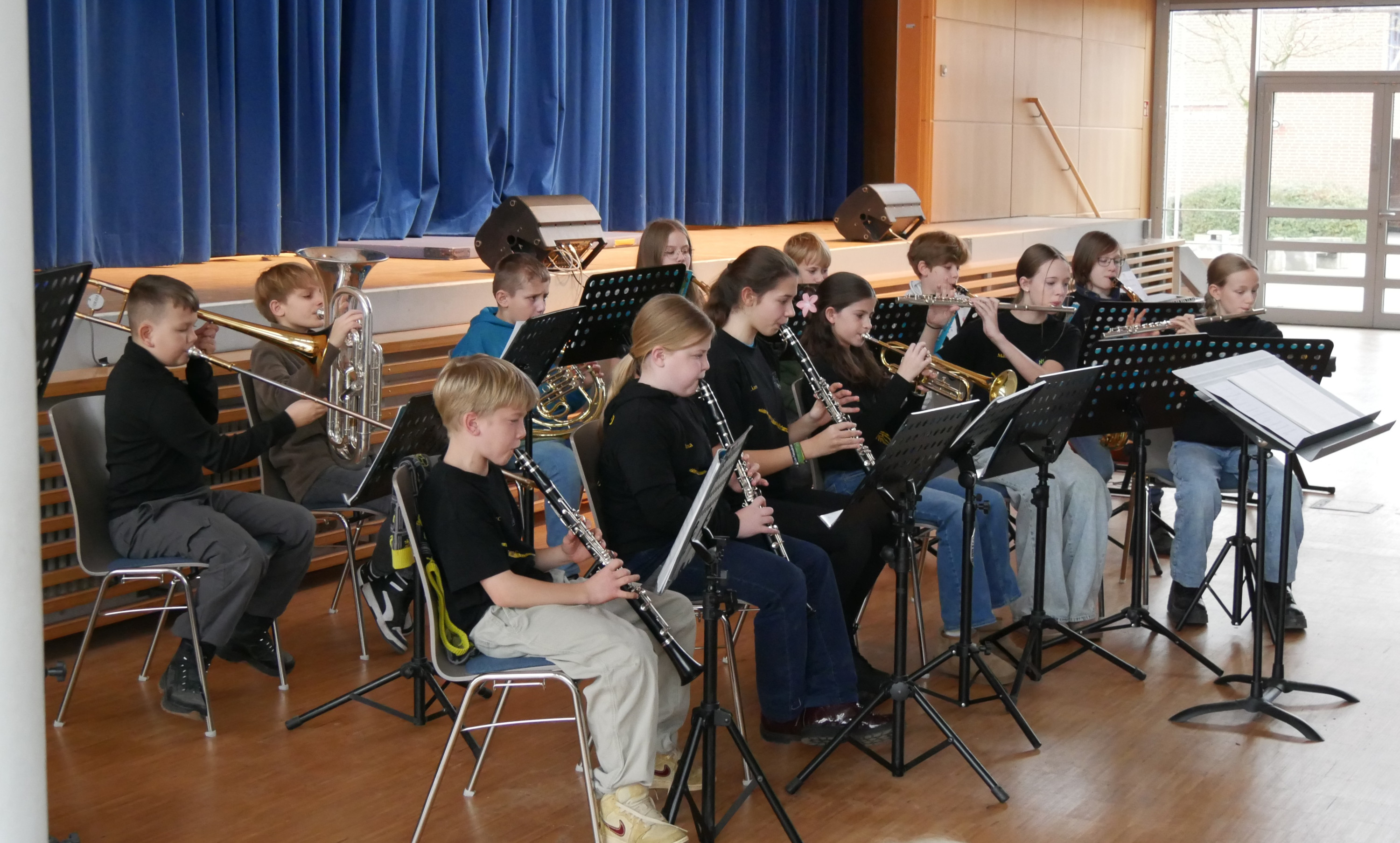 Die Bläsergruppe der Klassenband 6 musizierte unter anderem traditionelle Weihnachtslieder wie „Alle Jahre wieder“ oder „O du fröhliche“. Alle Mitwirkenden stimmten zum Abschluss des Konzerts gemeinsam mit den Publikum „We wish you a Merry Christmas“ an und entließen die Zuhörer in einer fröhlichen Atmosphäre in die Vorweihnachtszeit.